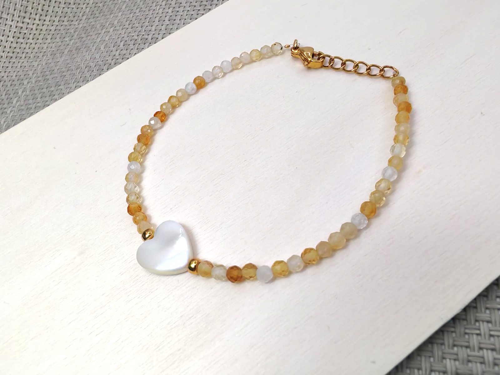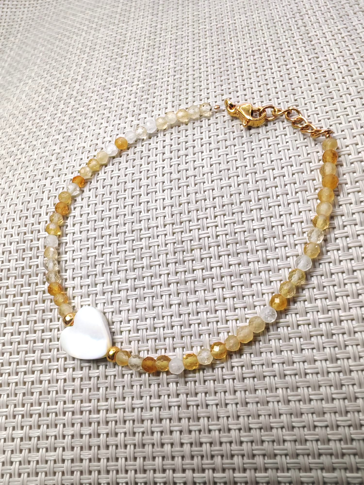 Bratara delicata si eleganta, realizata din pietre semipretioase de citrin fatetat de 4 mm, care capteaza frumos lumina prin nuantele sale calde, aurii. Citrinul este considerat un cristal al bucuriei si optimismului, multi il asociaza cu atragerea succesului si a prosperitatii.