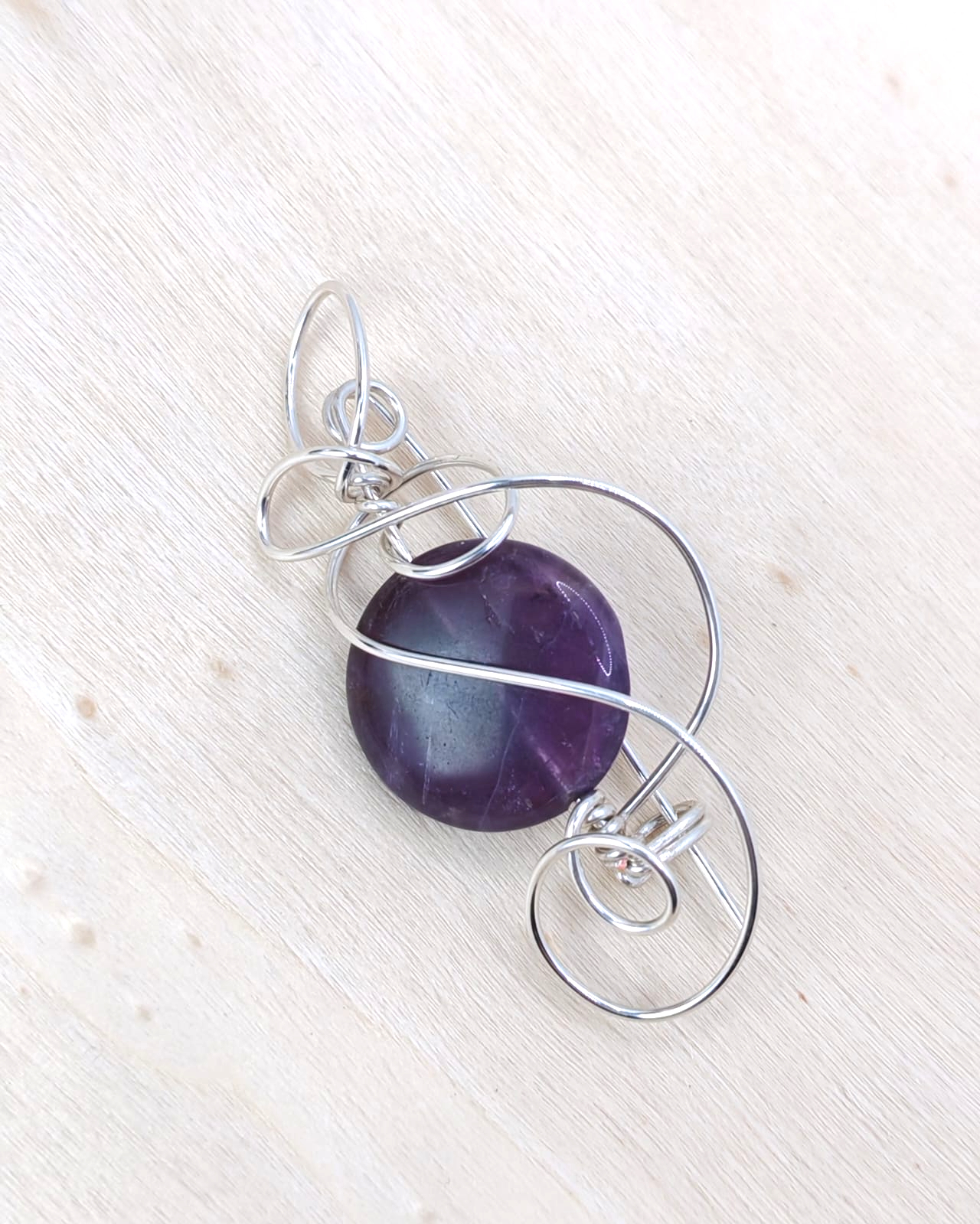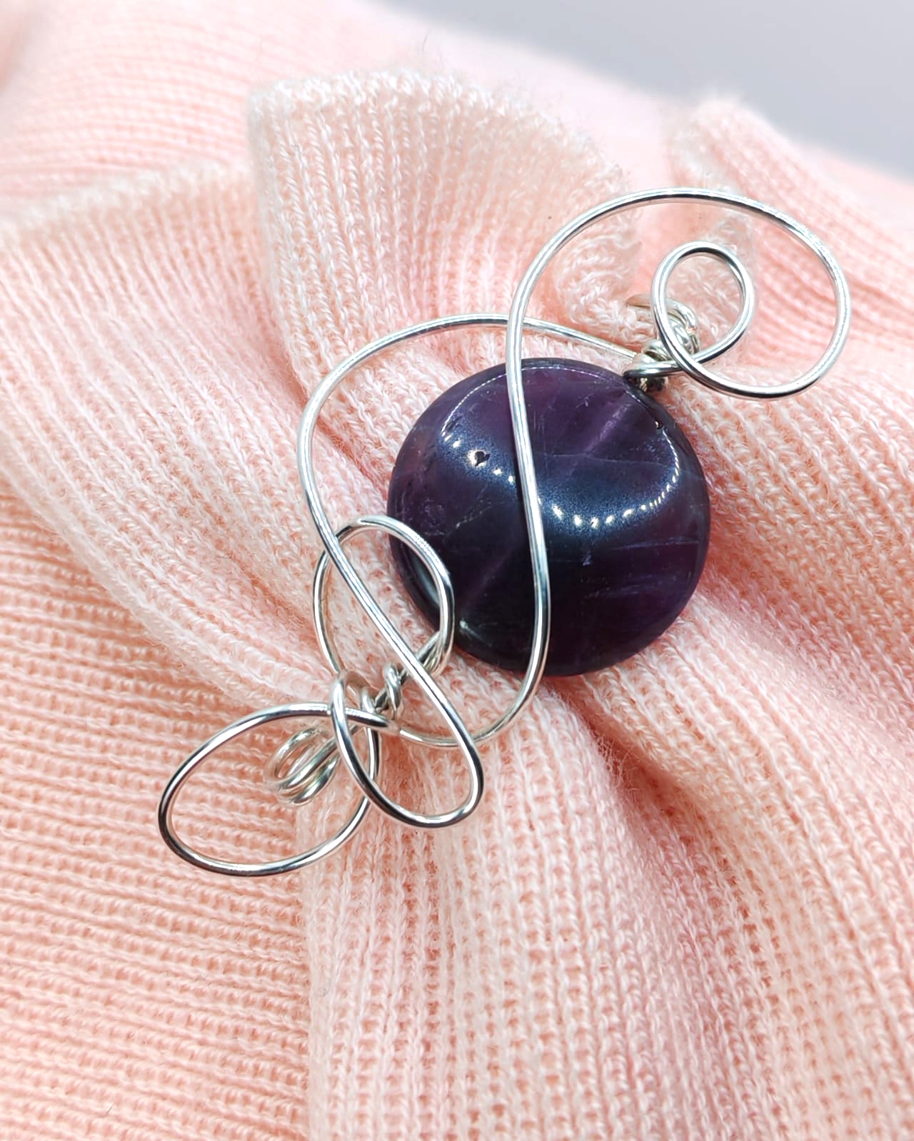 Ametistul este piatra calmului, a echilibrului si a claritatii spirituale. Este asociat cu linistea interioara si protectia energetica. Nuantele sale violet ofera brosei un aer regal si sofisticat, fiind alegerea ideala pentru iubitorii de eleganta clasica si bijuterii cu semnificatie profunda. Firul placat cu argint imbraca armonios piatra semipretioasa de ametist in forma rotunda plata.