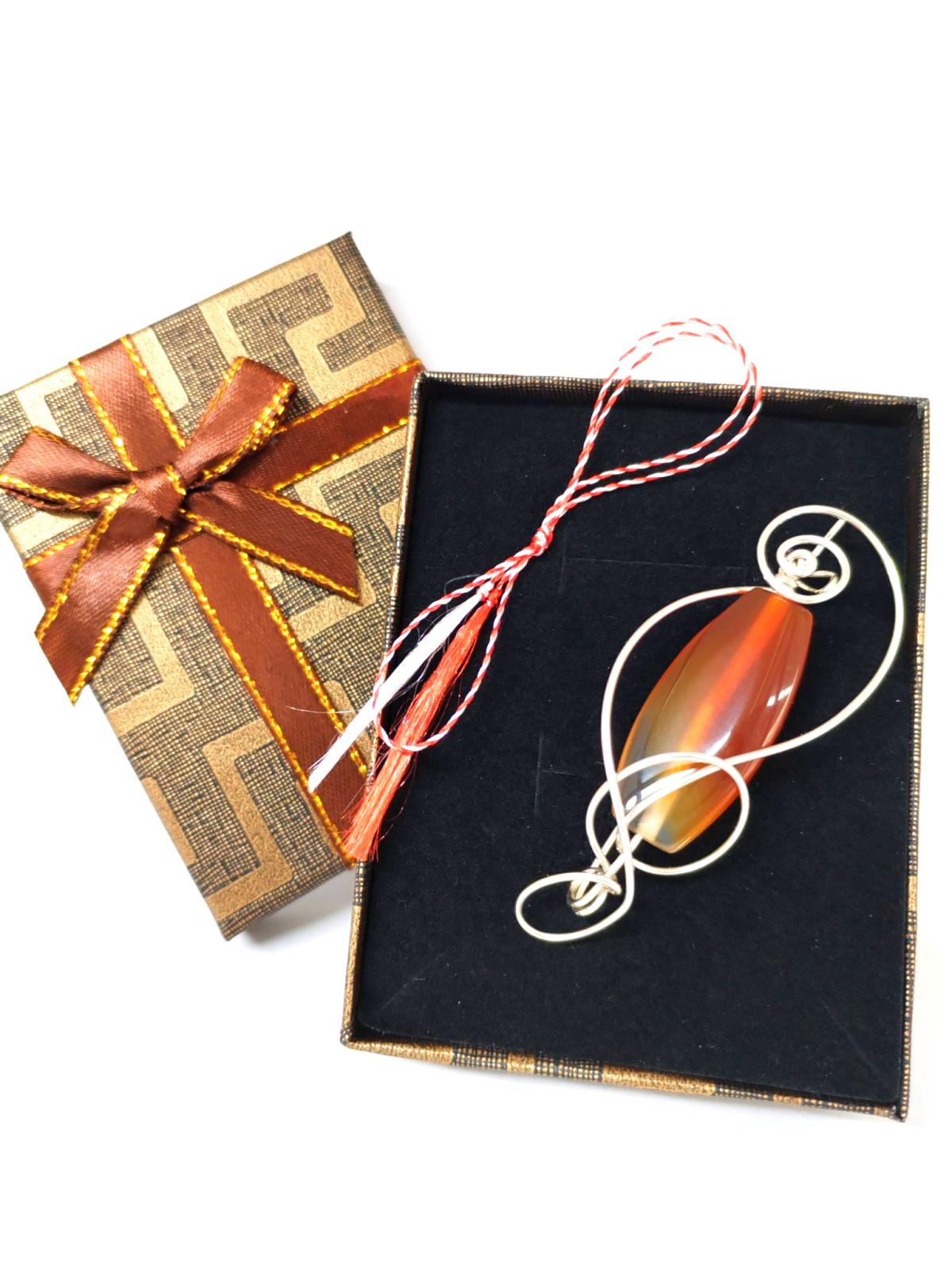 Carneolul este piatra vitalitatii, a curajului si a pasiunii. Este asociat cu energia creativa si cu increderea in sine, fiind ideal pentru cei care vor sa-si exprime personalitatea. Nuantele sale calde de portocaliu si rosu creeaza un contrast spectaculos cu firul placat cu argint, transformand broaa intr-un accent indraznet, plin de viata si dinamism.