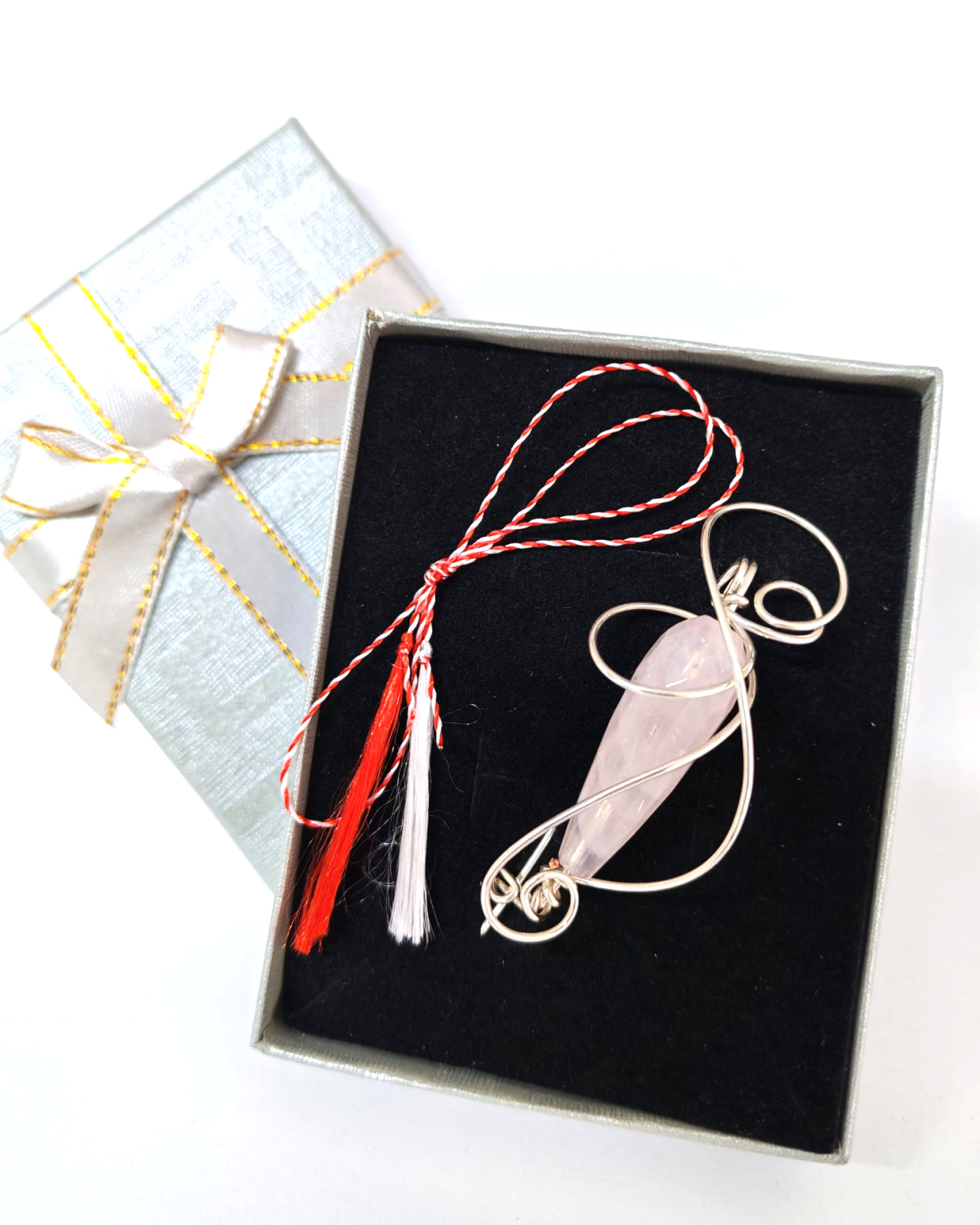 - Piatra semipretioasa: cuart roz in forma de lacrima de 3 cm