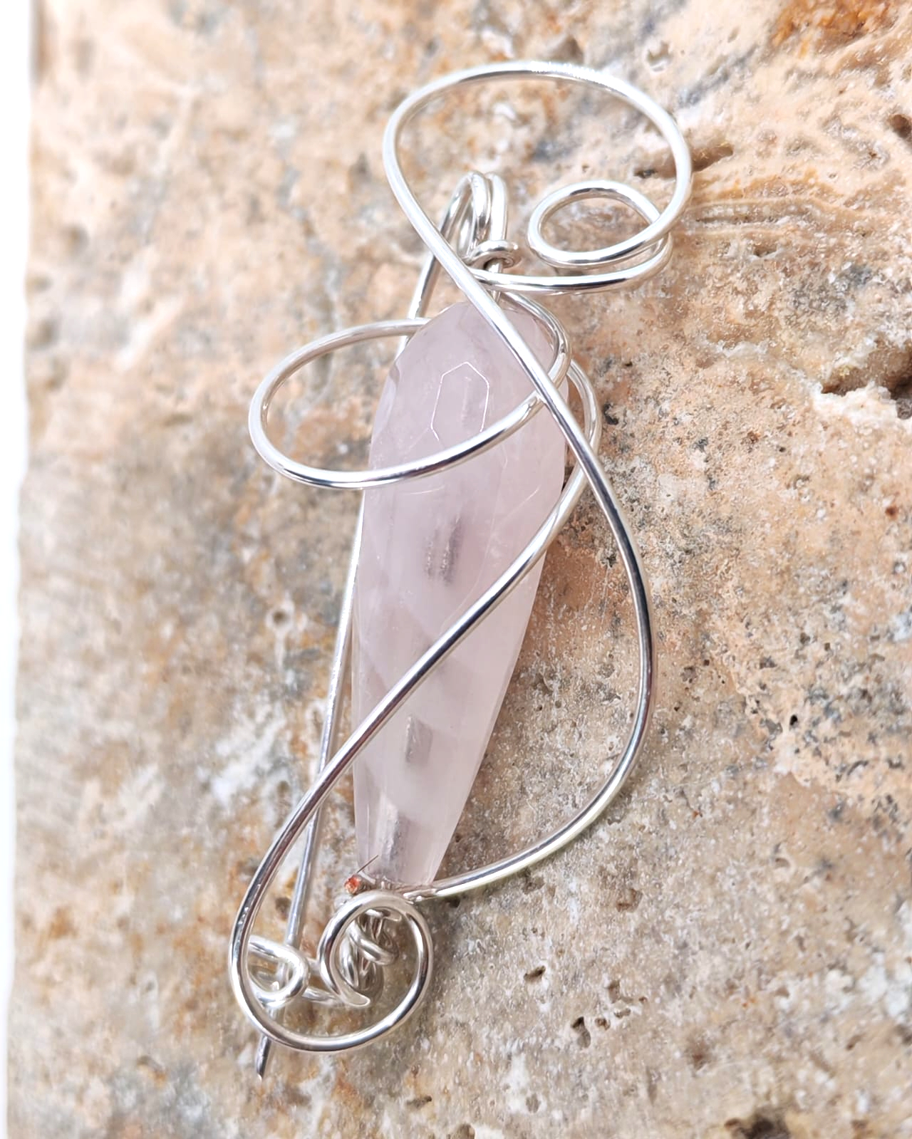 Cuartul roz este considerat piatra iubirii neconditionate, a armoniei si a blandetii. Se spune ca aduce pace interioara, deschide inima si stimuleaza energia pozitiva. Nuantele sale delicate ofera brosei un aer romantic si luminos, fiind alegerea perfecta pentru tinute feminine si pentru cei care iubesc accesoriile cu o vibratie calda si reconfortanta. Firul placat cu argint imbraca armonios si scoate in evidenta forma de lacrima fatetata a pietrei semipretioase de cuart roz.