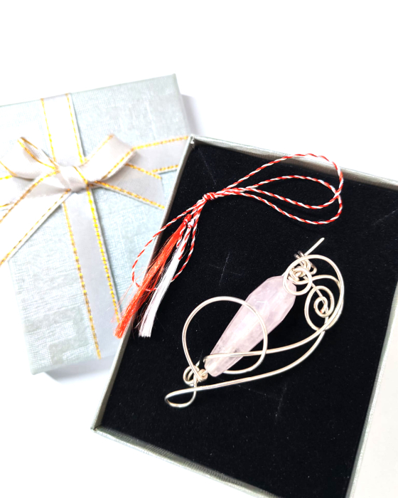 Cuartul roz este considerat piatra iubirii neconditionate, a armoniei si a blandetii. Se spune ca aduce pace interioara, deschide inima si stimuleaza energia pozitiva. Nuantele sale delicate ofera brosei un aer romantic si luminos, fiind alegerea perfecta pentru tinute feminine si pentru cei care iubesc accesoriile cu o vibratie calda si reconfortanta. Firul placat cu argint imbraca armonios si scoate in evidenta forma de lacrima fatetata a pietrei semipretioase de cuart roz.