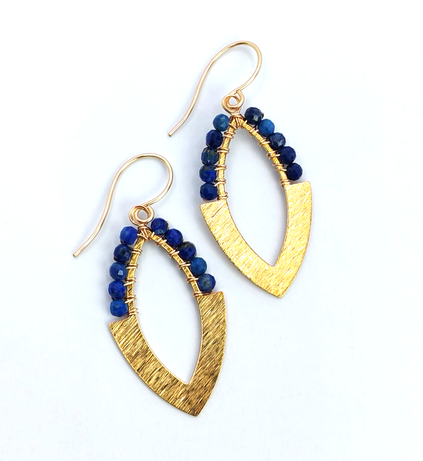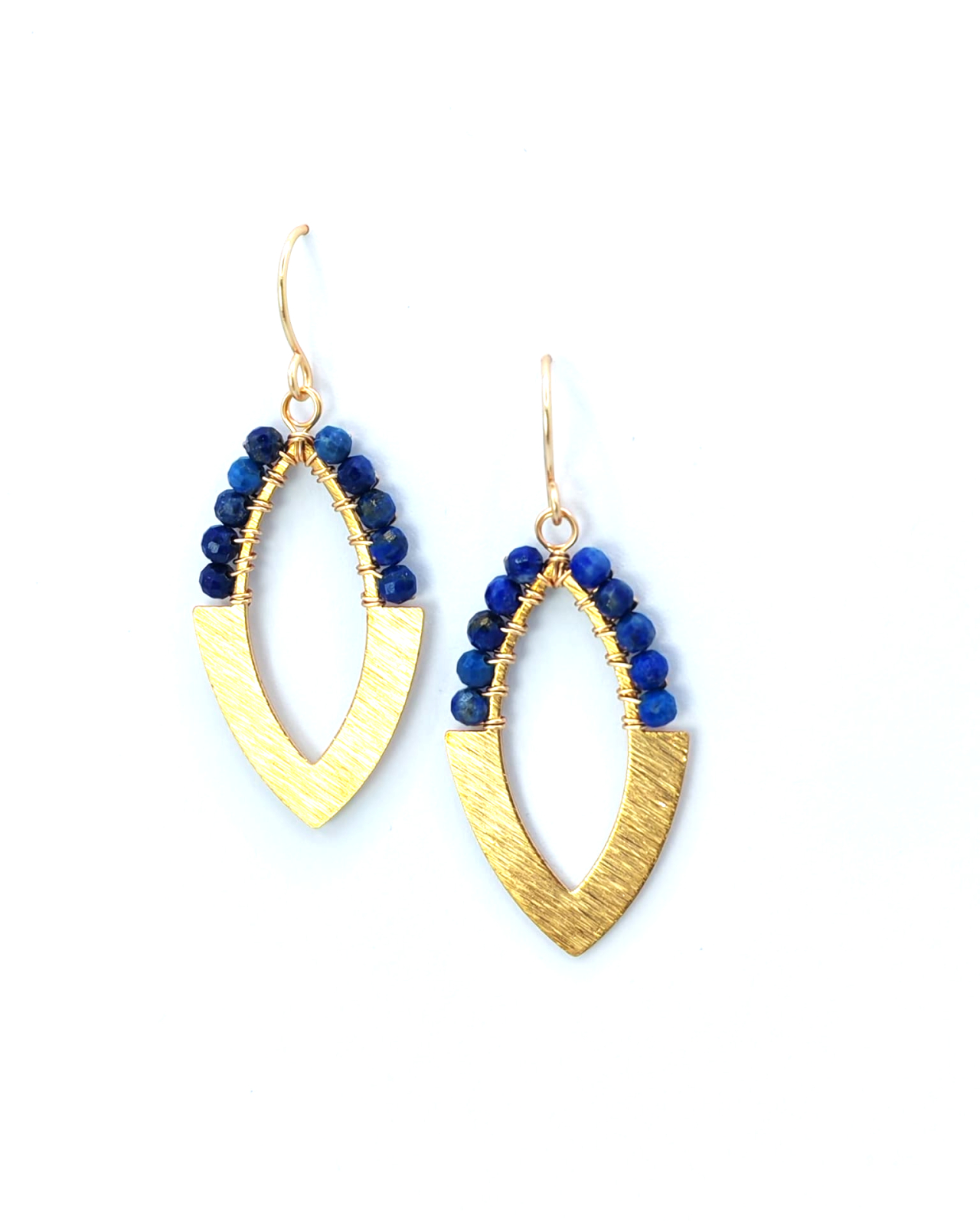 Profunzi si rafinati, cerceii Aqua cu lapis lazuli sunt inspirati de cerul noptii si de misterele cunoasterii interioare. Lucrati manual din alama si pietre semipretioase, acestia evidentiaza nuanta albastru intens a pietrei, simbol al adevarului si al intelepciunii. O bijuterie cu aer regal si atemporal.