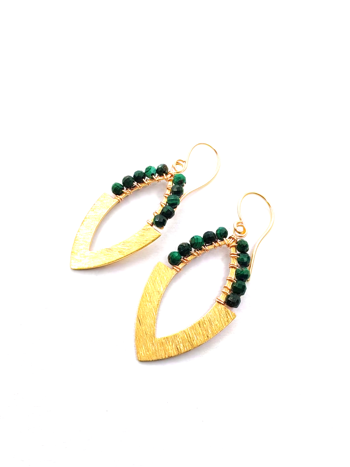 Intensi si magnetici, cerceii Forest cu malachit sunt o expresie a transformarii si a curajului interior. Lucrati manual din alama, acestia pun in valoare desenul natural al pietrei, unic pentru fiecare creatie. O bijuterie cu forta si profunzime, destinata celor care imbratiseaza schimbarea.