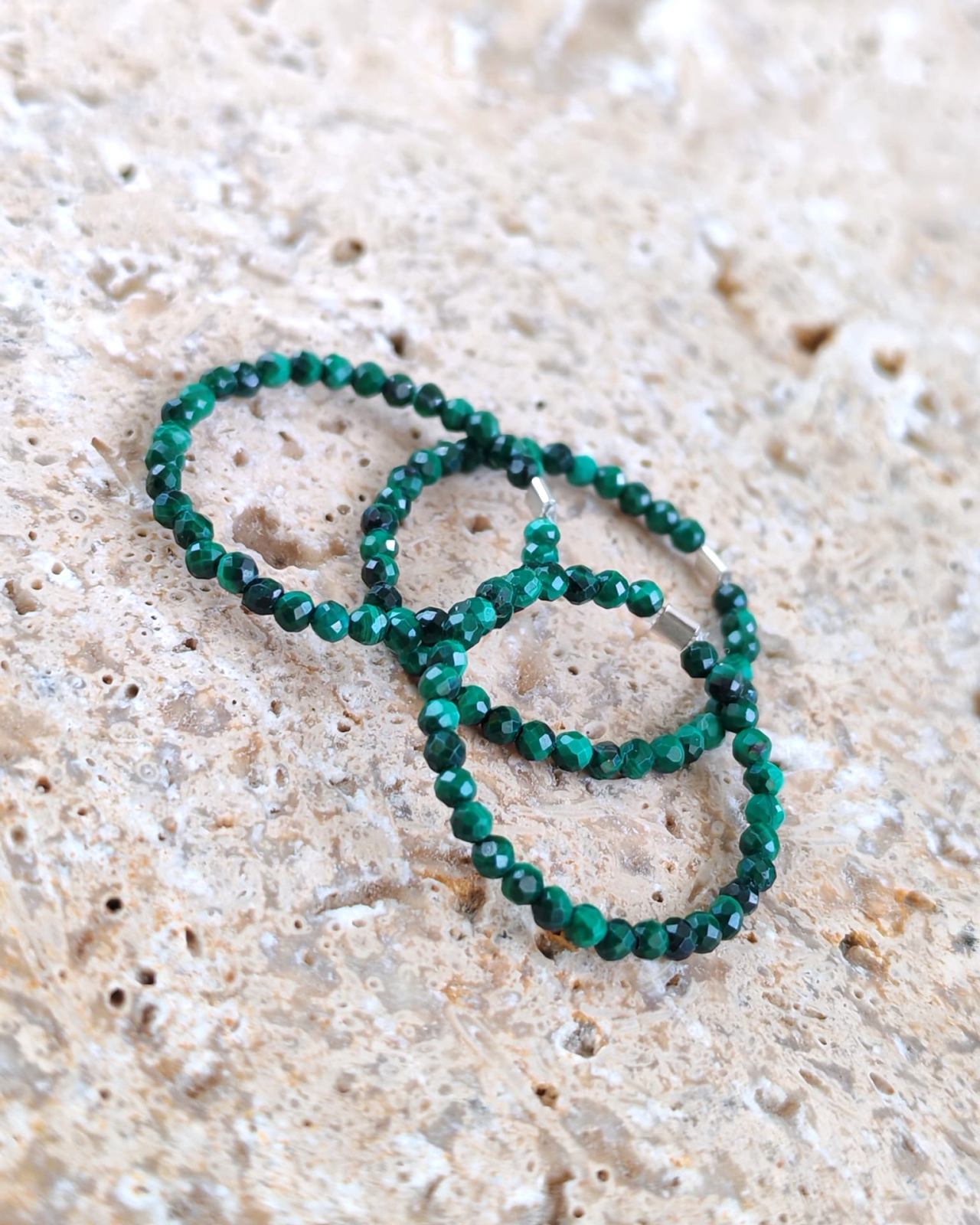 Verdele intens al malachitului, cu modele naturale unice, face ca acest inel sa fie imediat remarcat. Fiecare piesa are un desen diferit, oferind bijuteriei un caracter aparte.